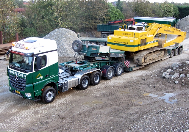 Leenaerts Born BV kreeg als een van de eersten in Nederland een Euro 6 trekker uit de nieuwe Arocs-range geleverd. Het is geen alledaagse versie, maar een zwaartransport uitvoering, die voluit te boek staat als Arocs 3351 S 6x4 Grounder.