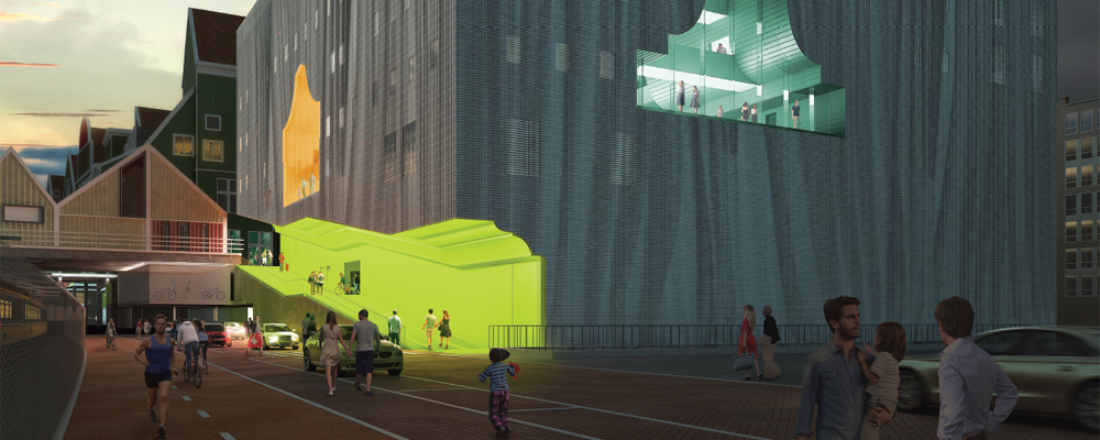 Een stoer, Zaans blok, met in de gevel de uitgesneden vorm van een Zaans huisje: zo komt de nieuwe Cultuurcluster in Zaandam er uit te zien. De nieuwe culturele hotspot in Zaanse stijl verrijst in het hart van de stad, naast het stadhuis en het station van Zaandam. Het wordt een duurzaam gebouw, met onder meer 800 zonnepanelen op het dak. De glasgevel van het imposante gebouw verbindt straks de centrale ontmoetingsruimte met het Stadhuisplein.