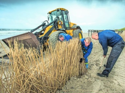Om verschuiving en verstuiving van de duinen tegen te gaan, plaatst het Hoogheemraadschap Hollands Noorderkwartier langs de kust van Noord-Holland rietschermen.