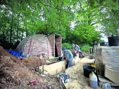 Mergelbouwsteenbedrijf Kleijnen uit Sibbe is druk in de weer met de restauratie van de ijskelder van het twaalfde-eeuwse kasteel Genhoes in Oud-Valkenburg. De kelder werd bij opgravingen gevonden en opnieuw opgebouwd.