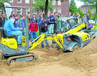 Hoe graaf je een in het zand vastgereden verreiker uit? Die onbedoelde les kregen de machinisten-in-opleiding van het Soma College op het Bouw en Infra Park in Harderwijk.