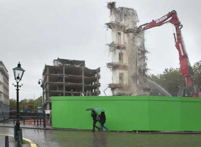 Jan Knijnenburg verwacht nog 1 à 2 weken bezig te zijn met de sloop van de voormalige Franse ambassade aan het Korte Voorhout in Den Haag.