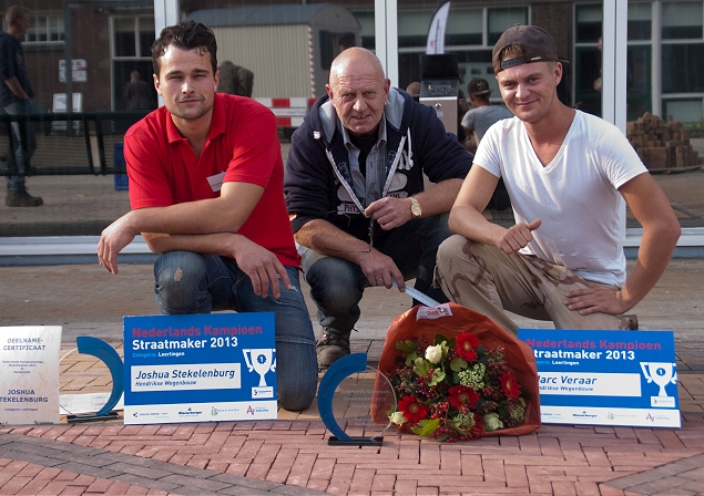 De straatmakerkoppels Joshua Stekelenburg en Marc Veraar (beiden Hendrikse Wegenbouw) en Robert van Ingen en Hans Meijer (beiden Van Ingen BV) zijn de winnaars geworden van het NK Straatmaken.