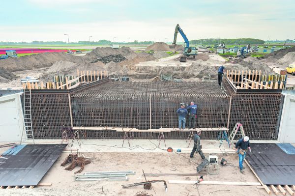 De reconstructie van verbindingsweg N248 en de N9 Alkmaar-Den Helder ligt op schema. Omdat er nog beton moet worden gestort, treffen ijzervlechters van Spanberg BV uit Uitgeest de laatste voorbereidingen.