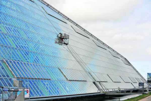 Het glazen kantoorgebouw Crystalic in Leeuwarden krijgt een volledige poetsbeurt. Niet alleen de 15.000 vierkante meter aan ruiten wordt gewassen, ook de aluminium profielen worden gepolijst.