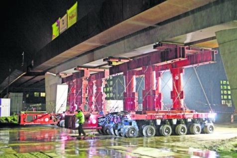 Met het plaatsen van het laatste deel van de Paleisbrug (44 meter lang en 10 meter breed) is de overspanning klaar. De komende maanden gaat Mobilis, die ook de ruwbouw realiseerde, de afbouw op zich nemen.