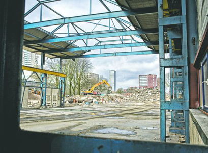 In hoog tempo verdwijnt een groot aantal panden op het terrein van de voormalige NS-werkplaats bij het station van Tilburg. De sloop van de panden is noodzakelijk voor de aanleg van de Burgemeester Brokxlaan.
