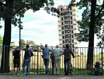 Sloopbedrijf M. Heezen gaat vandaag het resterende deel van het Philips-gebouw machinaal slopen.