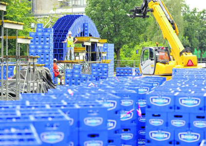 Met hun bierkrattenbrug willen studenten bouwkunde van de TU Eindhoven het huidige wereldrecord maar liefst drie keer overtreffen.