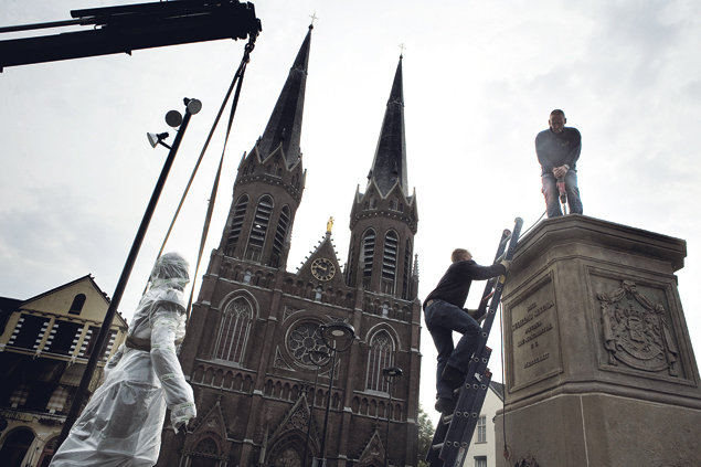 Terugplaatsing van het standbeeld van koning Willem II is een van de laatste werkzaamheden van de herinrichting van de Heuvel, het plein in het centrum van Tilburg.