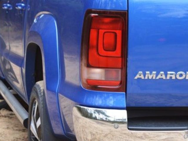 De neus is licht gewijzigd door een andere voorbumper en chromen accenten. Maar nog veel stoerder is natuurlijk het opschrift V6 dat in de grille prijkt. Na de facelift zijn de nieuwe koplampen leverbaar met xenonverlichting en LED-dagrijverlichting. Op de Highline-uitvoering is xenonverlichting standaard aanwezig en ook de chromen buizen – die langs de cabine in de laadbak lopen – zijn in deze uitvoering aanwezig. De blitse dorpelbeschermers en nieuwe wielen maken de auto een opvallende verschijning, die onderweg voor veel opgestoken duimen zorgt. Vergeleken met Amerikaanse concurrenten als de Ford F-150 en Dodge RAM – die door grijze import ons land binnenkomen – oogt de Amarok bijna vriendelijk. Maar als je het doorsnee Nederlandse wagenpark als referentiekader neemt, staat er een lel van een auto. Iets dat je merkt als je de auto wilt parkeren in een parkeergarage of voor de plaatselijke supermarkt; voor de meeste parkeervakken is de Amarok een tikje te groot.