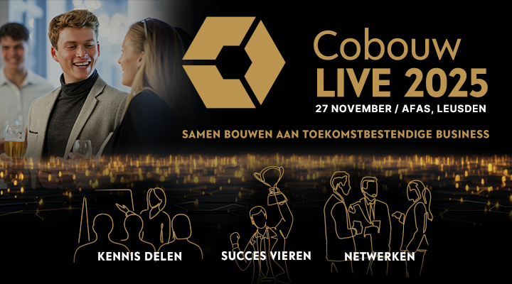 Hoe blijf je als professional in de bouwsector innovatief, toekomstbestendig én succesvol in turbulente tijden? Op 27 november helpt Cobouw LIVE je daar antwoorden op te vinden. Het wordt een dag vol inspiratie, kennis en concrete handvatten voor de toekomst van de bouwsector.