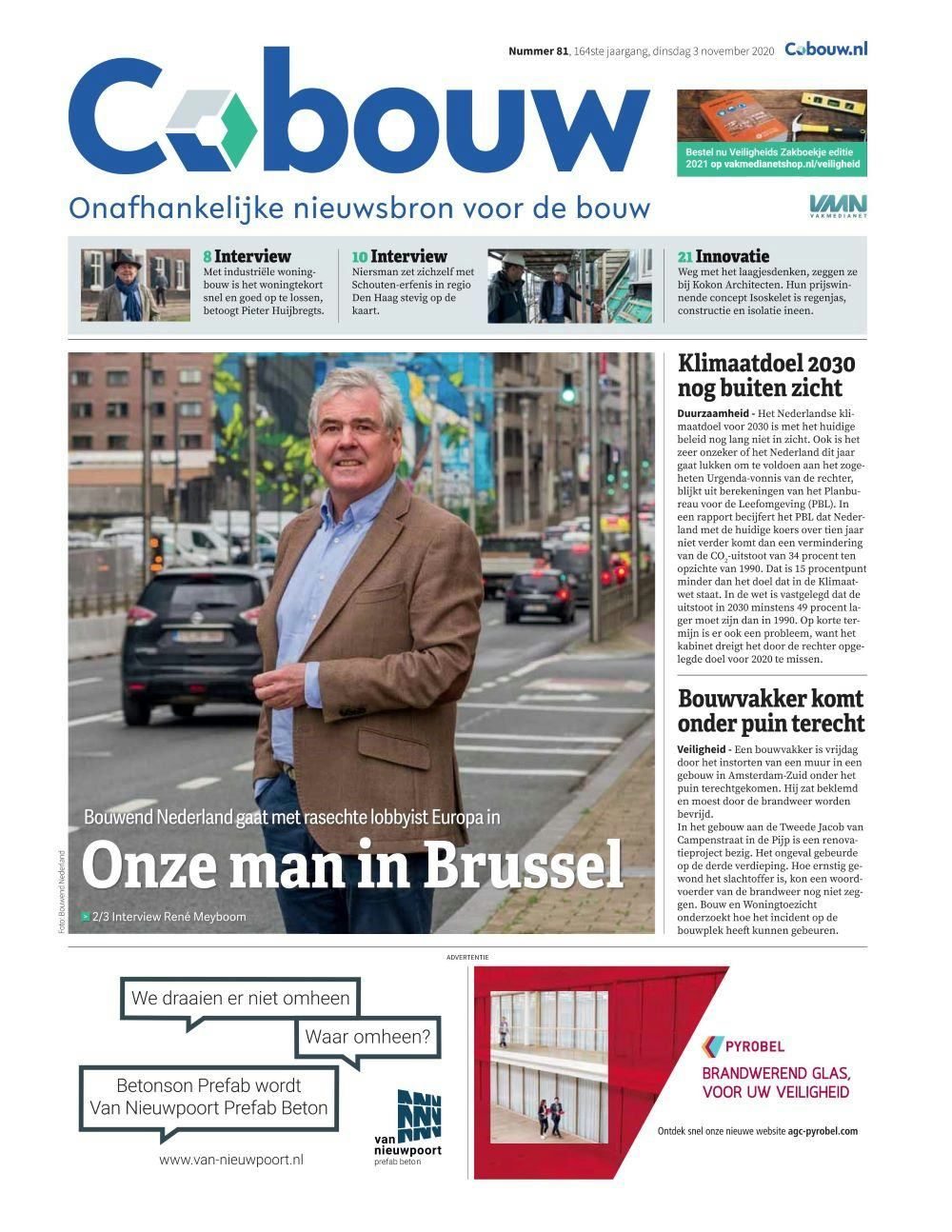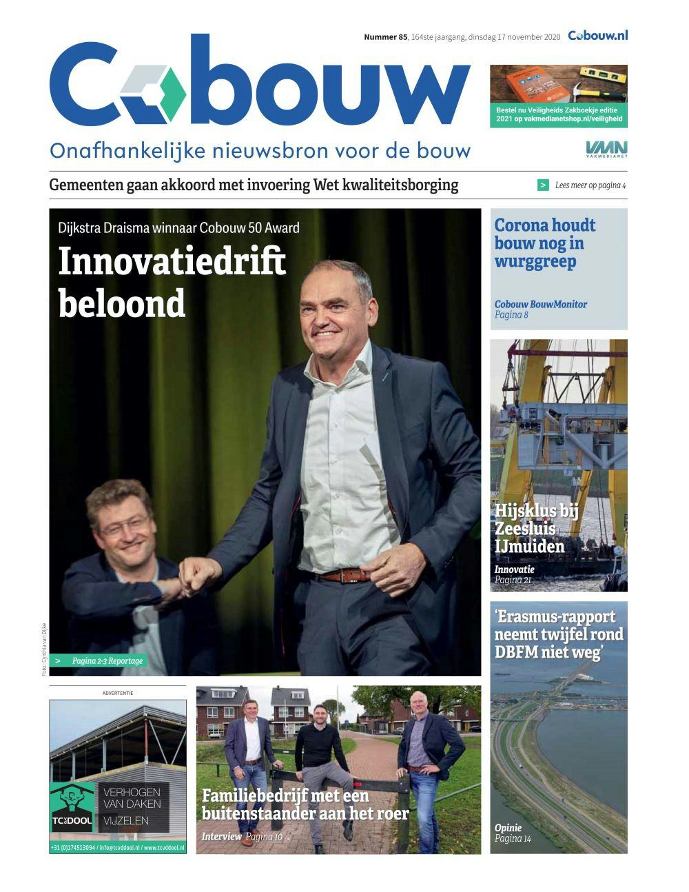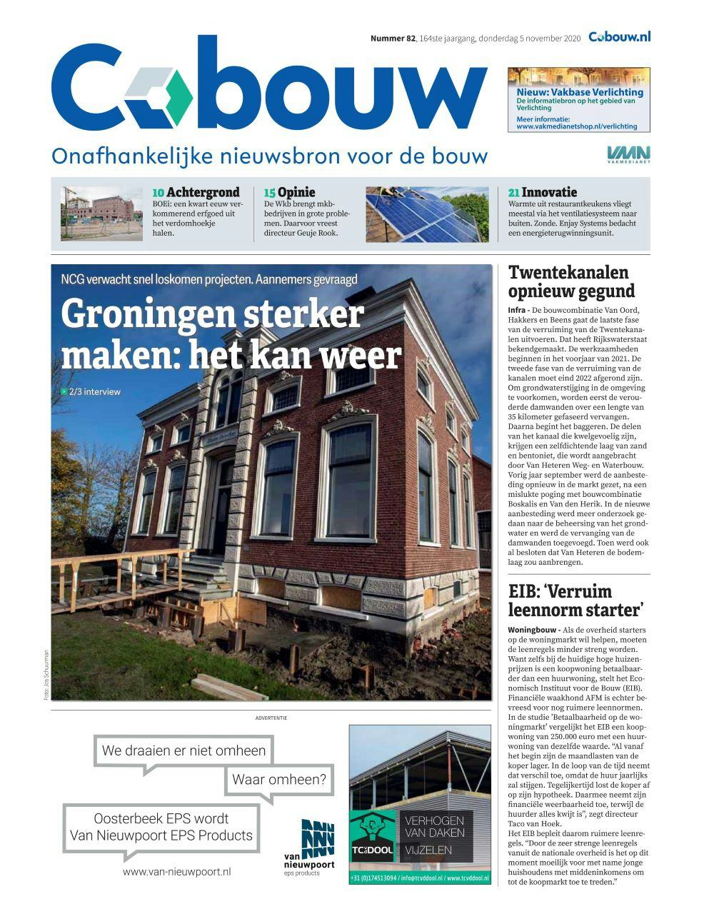 En verder: BouwMonitor: 'Voor klusje over de grens moet je nu tien dagen in quarantaine' Interview: Even geen Mateboer aan het roer: 'ik blijf het lastig vinden' Opinie: Evaluatierapport over DBFM is visieloos en mist onderbouwing