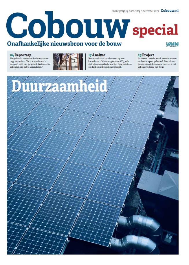 Wat ooit een stip aan de horizon was, is inmiddels het nieuwe gewoon. Dat blijkt uit de verschillende projecten in deze Cobouw special over duurzaamheid.