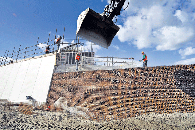 Bij knooppunt Hooggelegen langs de A2 legt bouwcombinatie Trajectum Novum bij de nieuwe afritten richting Utrecht Centrum grondwallen aan.