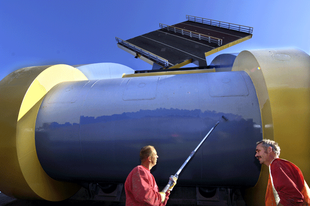 De opvallend vormgegeven Slauerhoffbrug in Leeuwarden krijgt een grote schilderbeurt.