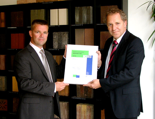 De certificerende instantie IKOB-BKB overhandigt Wienerberger BV op 11 mei aanstaande het certificaat ISO 14001: de internationale standaard voor een goed milieumanagementsysteem. Wienerberger onderstreept hiermee haar intensieve aandacht voor milieubewust ondernemen. Waarmee Wienerberger haar duurzame producten en duurzame productiemethoden kan waarborgen, en voldoet aan de eisen die worden gesteld in onder meer het overheidsbeleid dat gericht is op duurzaam inkopen.