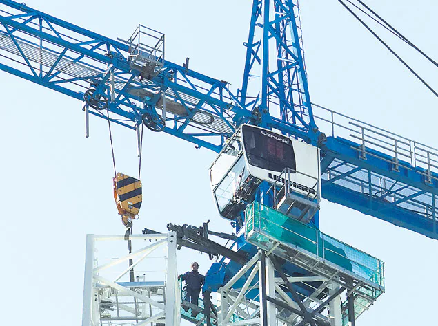 Nadat ze ruim een jaar op hun opbouwhoogte hebben gefunctioneerd worden de kranen voor JuBi nu één voor één uitgeklommen. De hoogste heeft sinds deze dinsdag een haakhoogte van 102 meter.