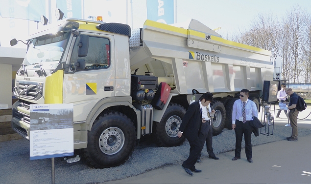 Zelfs als er een bekende naam zoals Boskalis opstaat zie je ze (bijna) nooit rijden in ons land: mining trucks. Bas miningtrucks uit Veghel bouwt ze en bracht er twee mee naar de Bauma. Een daarvan was een regelrechte wereldprimeur.