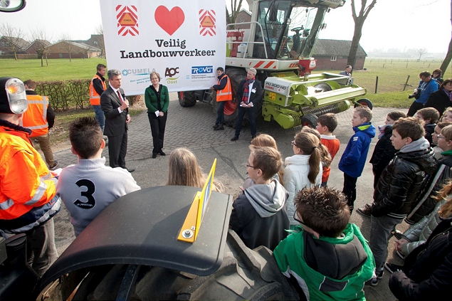 Op de basisschool in het Gelderse dorp Azewijn is de landelijke aftrap gehouden voor de door CUMELA en ROVG gestimuleerde campagne 'Veilig landbouwverkeer'. Die richt zich met name op schoolkinderen.